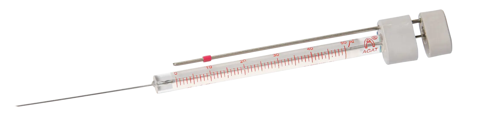 Микрошприцы АГАТ МШ-1 предназначены для ввода жидких проб в приборы химико-аналитического ряда, в частности в дозатор-испаритель хроматографа.