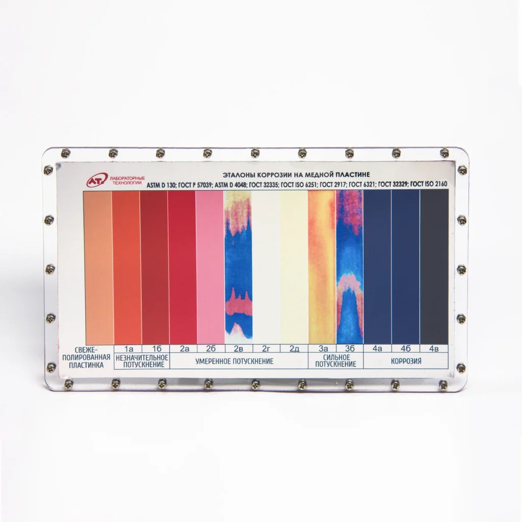 Эталоны коррозии предназначены для анализов по ГОСТ ISO 6251, ГОСТ Р 57 039, ГОСТ 32 329, ГОСТ 32 335, ГОСТ 6321, ГОСТ IS0 2160, ГОСТ 2917, ASTM D 4048, ASTM D 130.