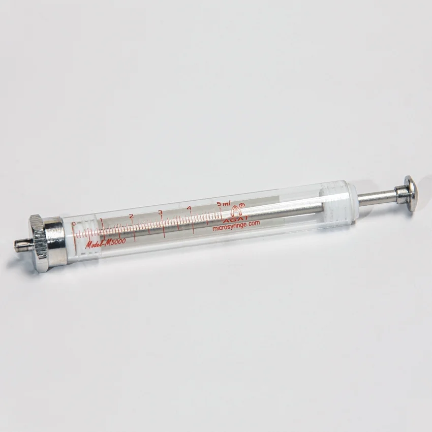 Микрошприцы АГАТ М-5000 с наконечником LUER предназначены для ввода жидких проб в приборы химико-аналитического ряда, в частности в дозатор-испаритель хроматографа.