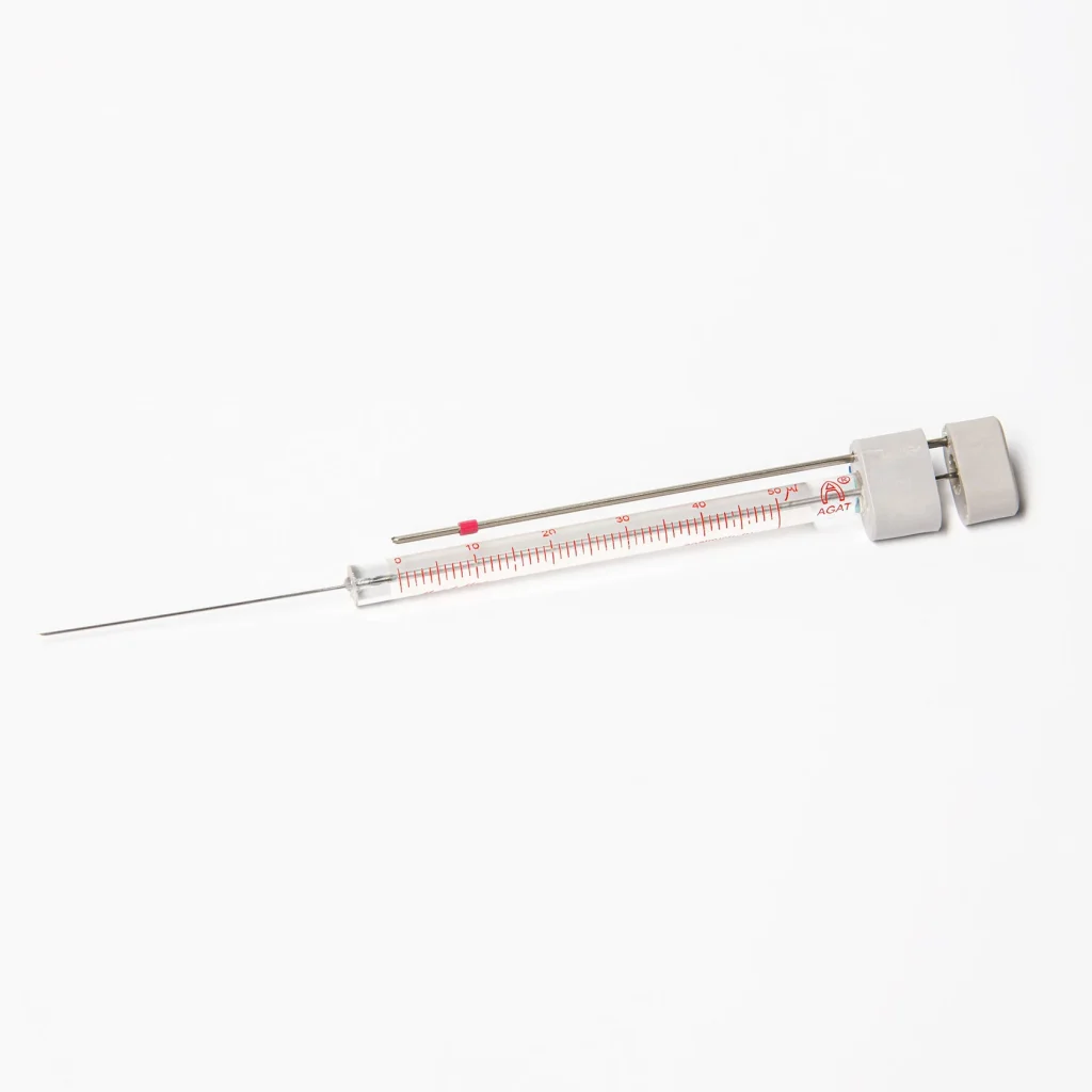 Микрошприцы АГАТ М-5Н предназначены для ввода жидких проб в приборы химико-аналитического ряда, в частности в дозатор-испаритель хроматографа.