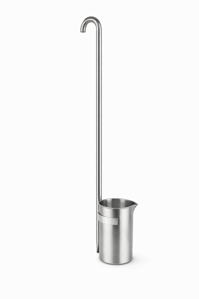 Ковшик-пробоотборник ПП ДМ-1000 мы разработали с учетом требований гигиены, удобства и точности. Для работы на пищевых предприятиях это самые важные критерии. Пробоотборник представляет собой съемный стакан с носиком и градуировкой. Чаша стакана плотно вставляется в кольцо-держатель, расположенный на длинной ручке. Ручка имеет закругленное окончание (типа “зонтик”) для удобного хранения пробоотборника.