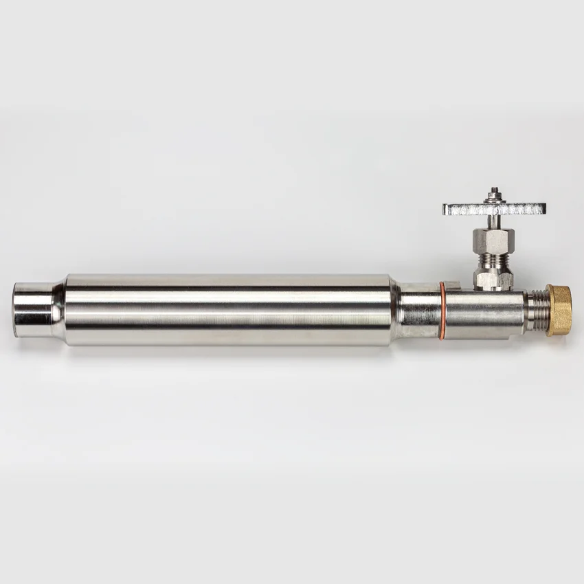 Пробоотборник для газа типа ПГО-100 бесшовный предназначен для отбора проб сжиженных углеводородных газов (ГОСТ 14 921−78). Пробоотборники применяются для отбора углеводородных газов, находящихся под избыточным давлением собственных паров из стационарных емкостей (цилиндрических, шаровых, железнодорожных цистерн, баллонов, а также из трубопроводов при перекачке газов путем продувки его сжиженным газом). Пробоотборники используются для отбора проб сжиженных углеводородных газов, микропримесей (общей серы, сероводорода, влаги и др.), углеводородного состава сжиженных газов.