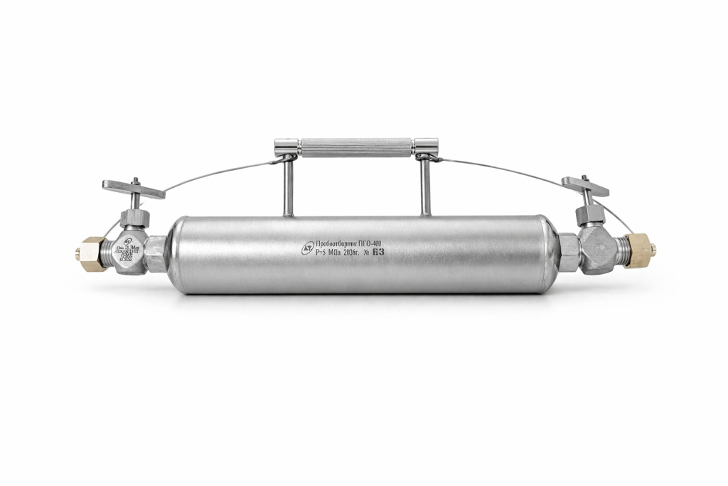 Пробоотборник газа ПГО-400 для сжиженных углеводородных газов применяется для отбора газов, находящихся под избыточным давлением собственных паров из стационарных емкостей (цилиндрических, шаровых, железнодорожных цистерн, баллонов, а также из трубопроводов при перекачке газов путем продувки его сжиженным газом). Пробоотборник используется для отбора проб сжиженных углеводородных газов, микропримесей (общей серы, сероводорода, влаги и др.), углеводородного состава сжиженных газов.
