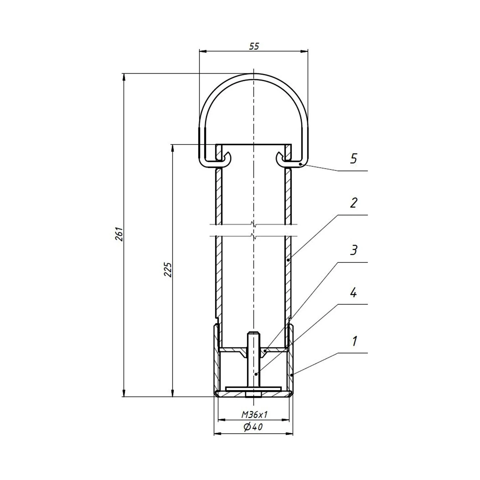 Габариты (высота х диаметр), мм: 261х55х40