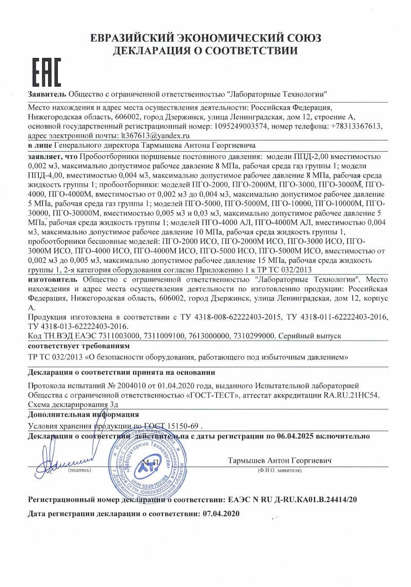 Давление рабочее: 20,0 (204,0) МПа (кгс/см²)