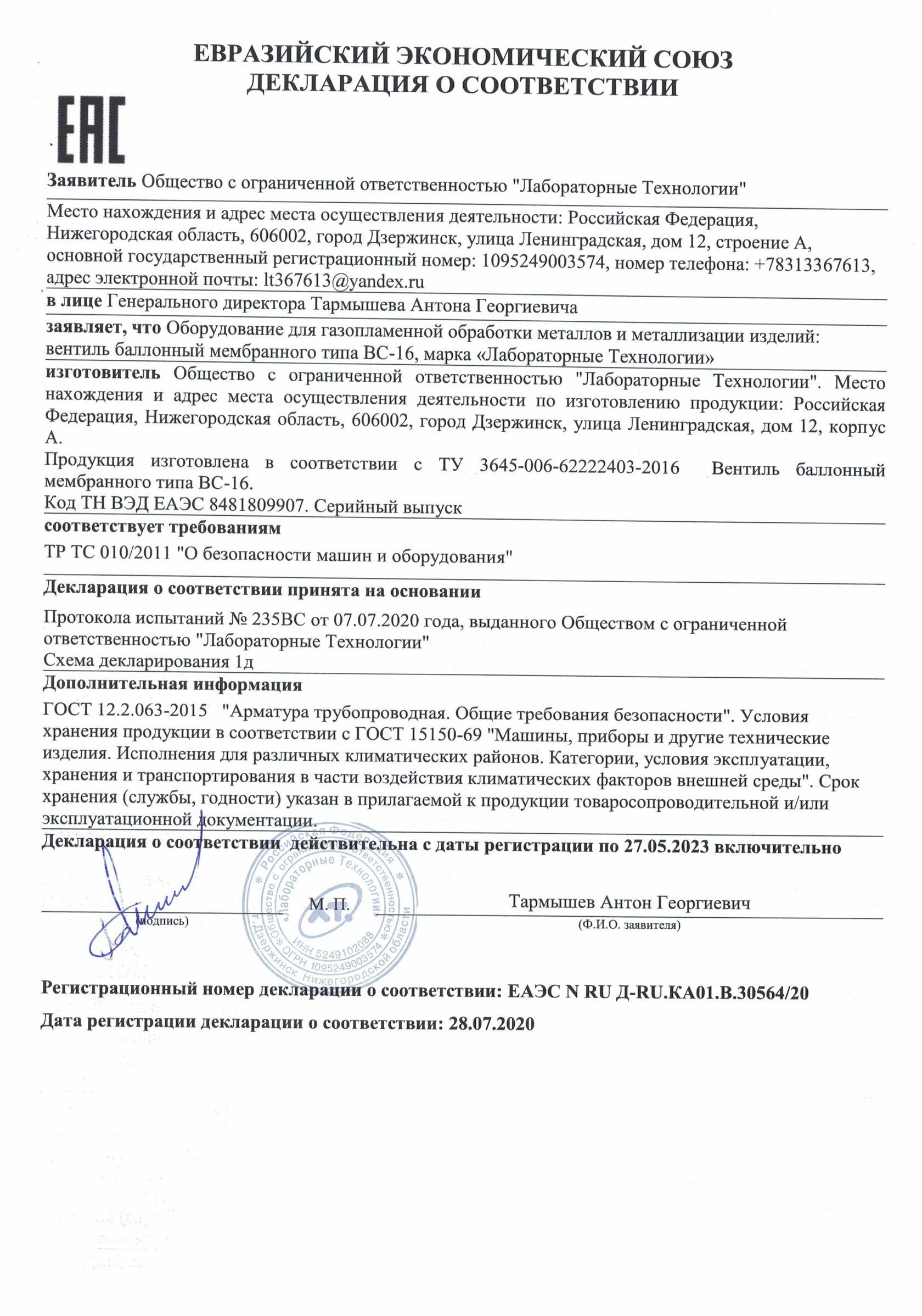 Изготовитель гарантирует соответствие вентилей требованиям ТУ 3645−006−62 222 403−2016 при соблюдении потребителем условий транспортирования, хранения и эксплуатации.