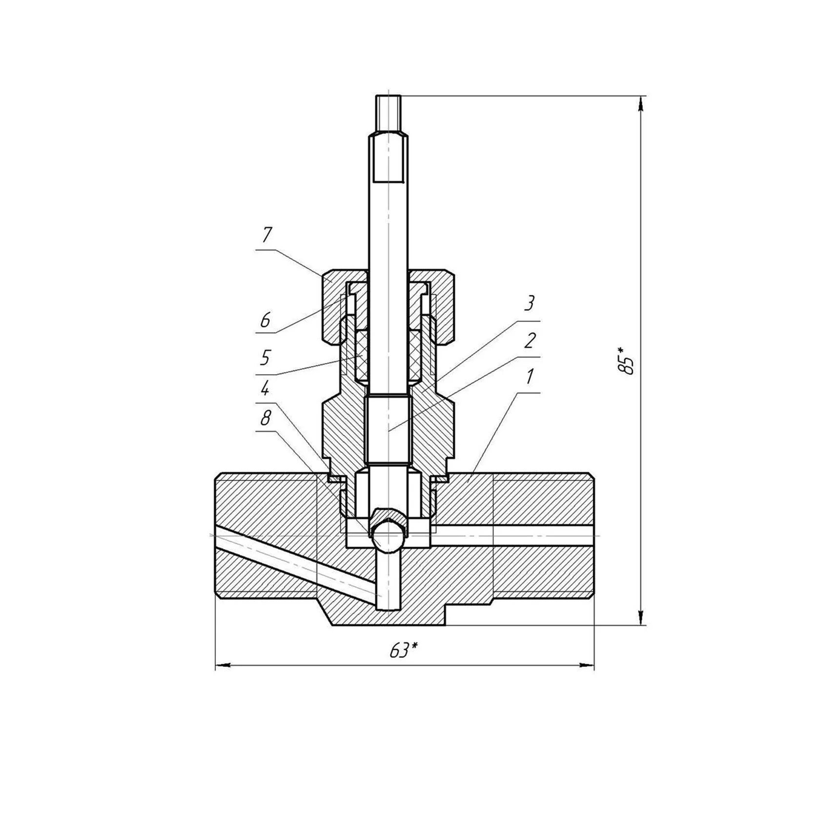Материал запорного клапана: 95Х18 ГОСТ 5632-2014