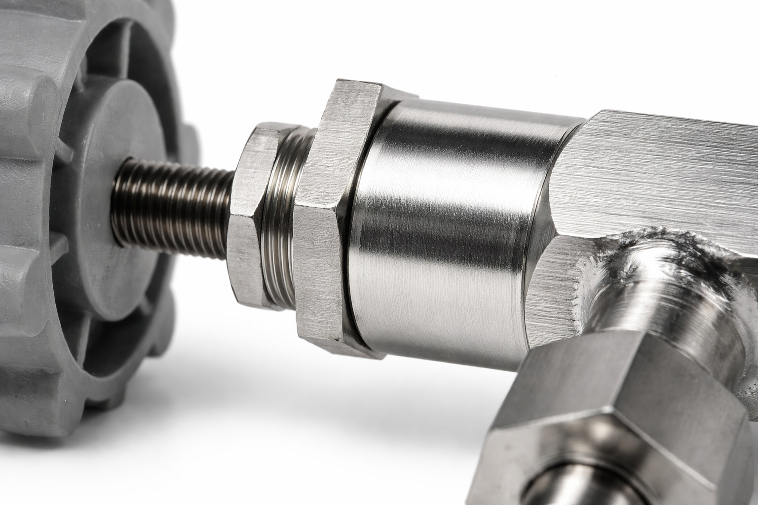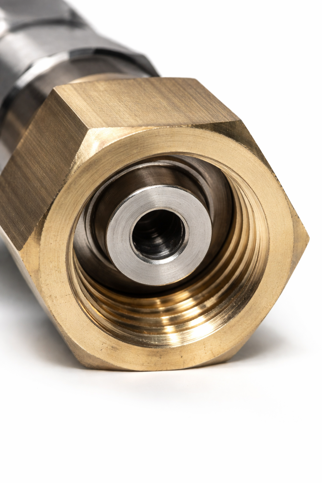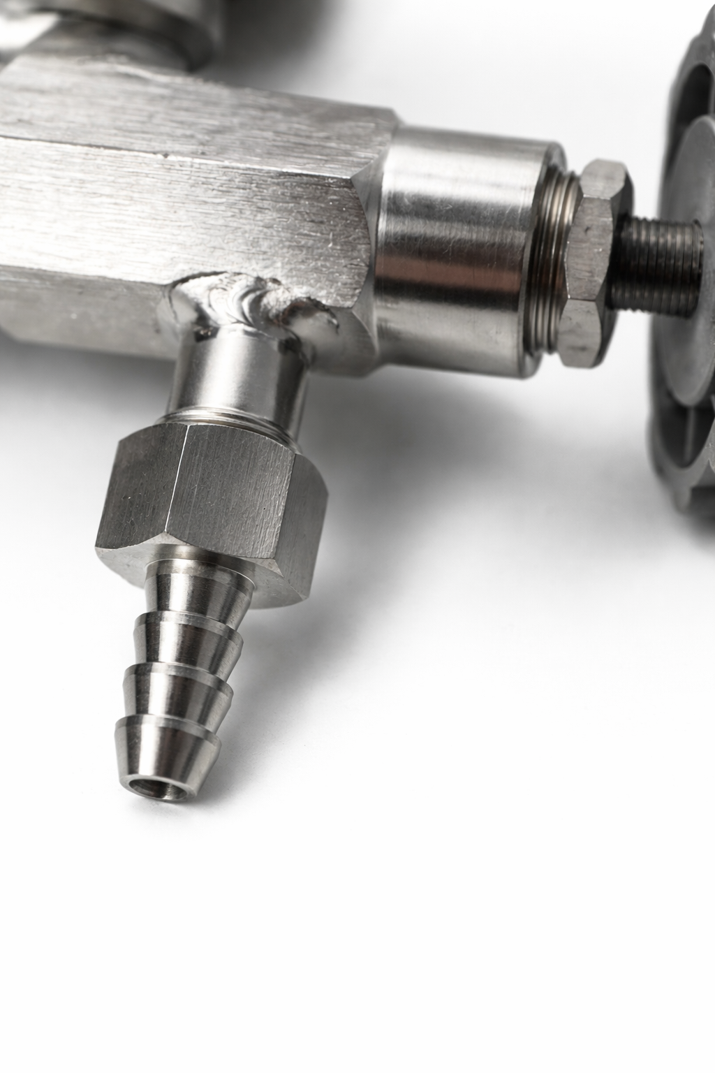 Натяжка штуцера присоединительного осуществляется накидной гайкой.