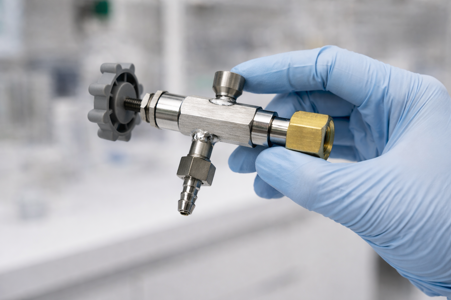 Газ из баллона поступает в регулирующий канал вентиля. Как правило, игольчатый механизм изменяет проходное сечение. При этом оператор задаёт точный расход вращением рукоятки. Таким образом формируется стабильный поток без пульсаций, что напрямую влияет на репрезентативность и аналитическую достоверность измерений.