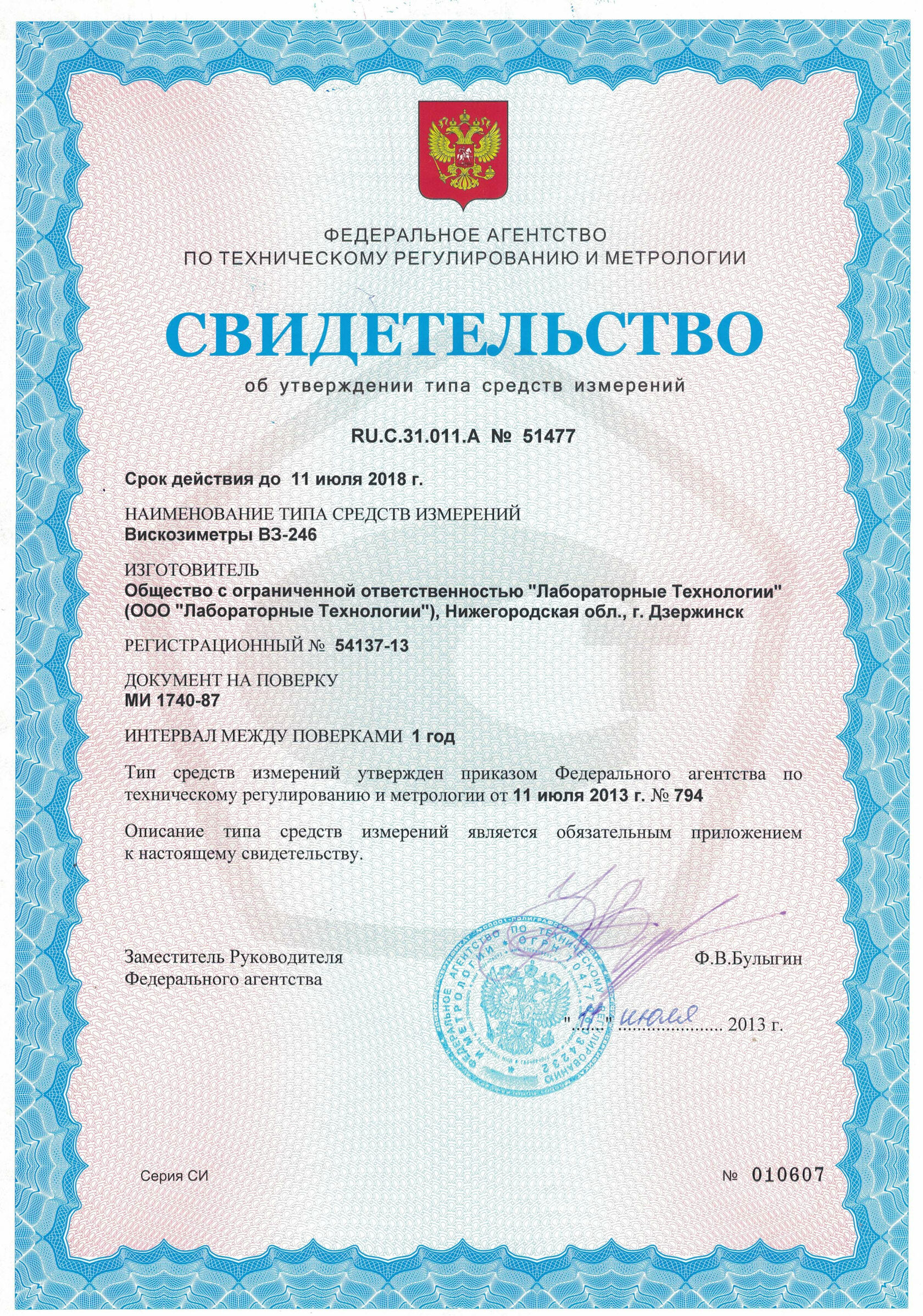 Срок действия утвержденного типа продлен на 5 лет на основании приказа Росстандарта от 05.03.2024 г. № 611: